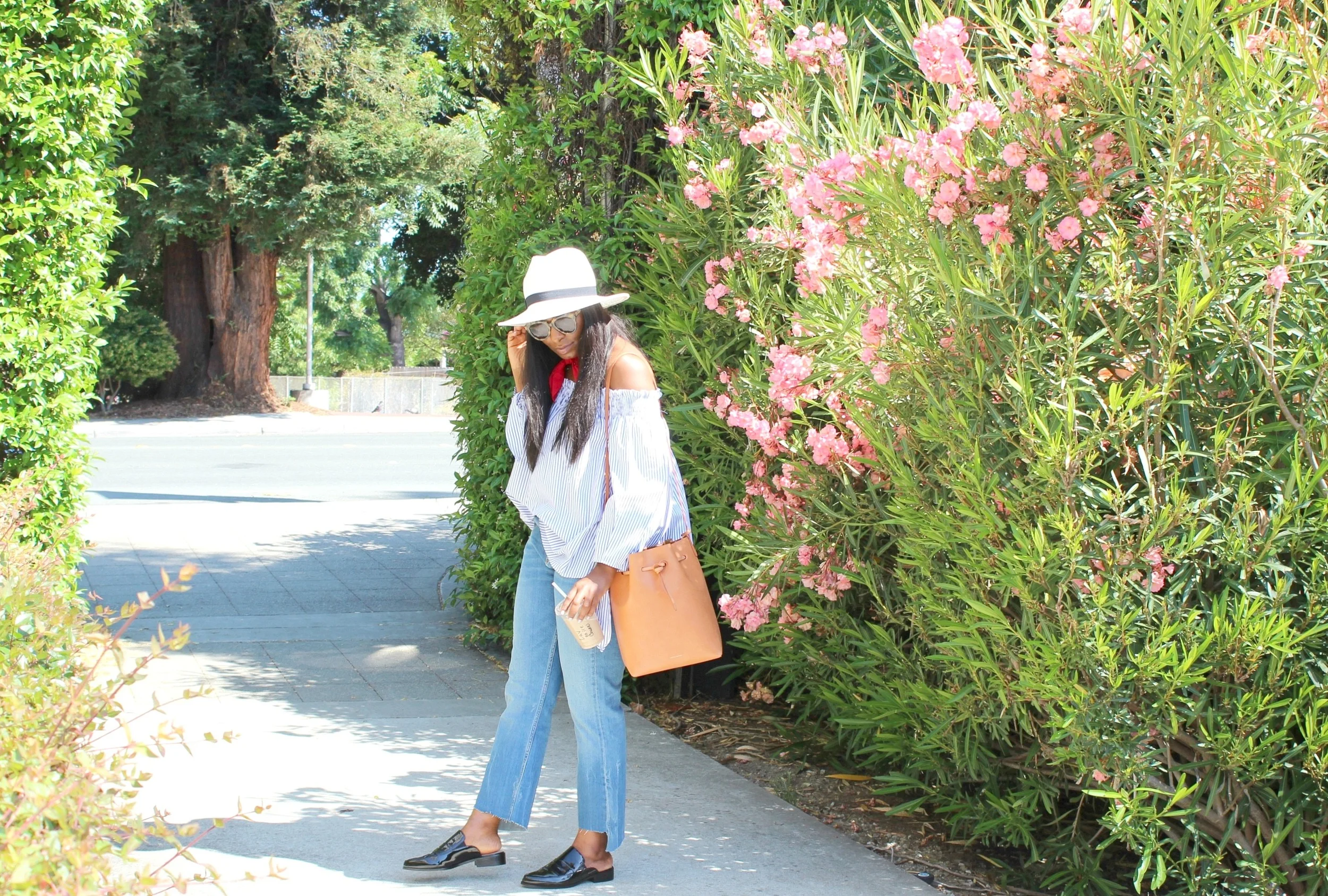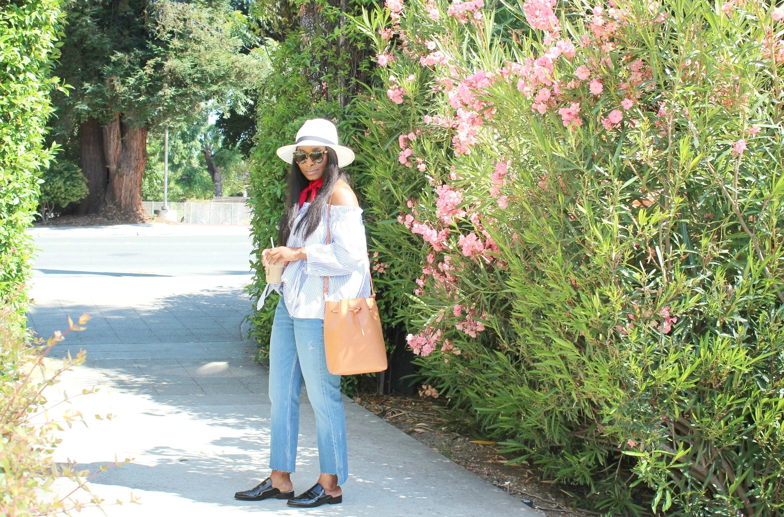 Top: SheInside. Jeans: Zara. Shoes: French Connection {loving these + these}. Bag: Mansur Gavriel. Hat: Target. Scarf: Amazon {similar here}. Sunnies: Karen Walker.